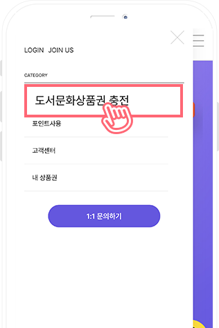 메인에서 '도서문화상품권 충전'을 선택합니다.