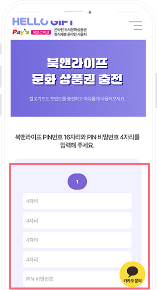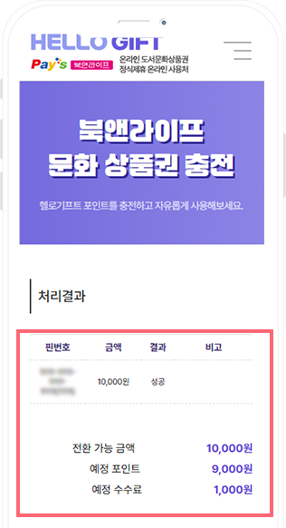 16자리의 핀번호 + 핀비밀번호를 입력후 전환충전 가능한 금액을 조회할 수 있습니다.